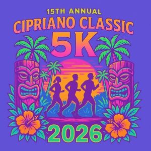The 15th Annual Cipriano Classic will take place on Friday, June 5, 2026. The 15th annual Cipriano Classic will feature a luau race theme with tropical decorations, finish line leis, island music, and a post race celebratory party with KONA ICE, for all entrants.