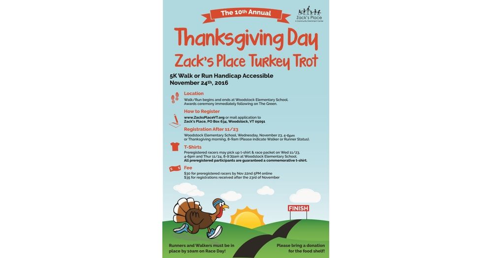 Event Website: https://zacksplacevt.org/turkey-trot/