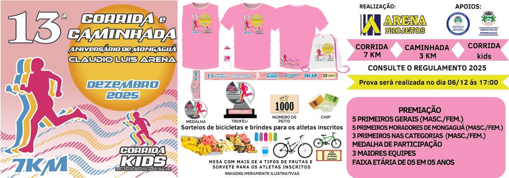 Largada, Chegada e Concentração dos Atletas: Praça Dudu Samba, Centro de Mongaguá/SP.