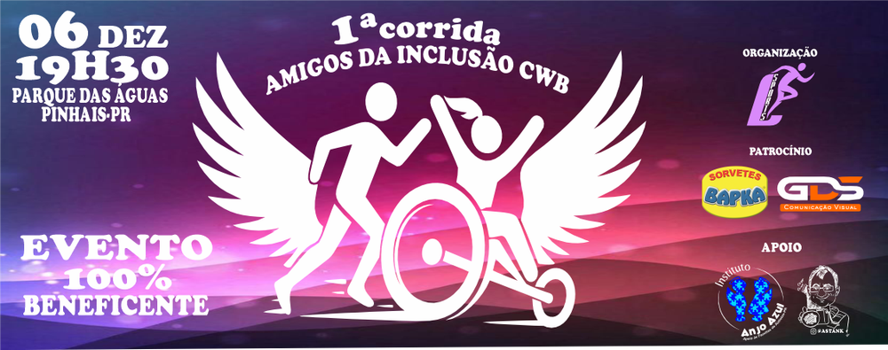 A Associação Amigos da Inclusão CWB surgiu da união de vários amigos que tem uma paixão em comum: a inclusão de pessoas com qualquer tipo de deficiência em corrida de rua através de triciclos adaptados. A Associação Amigos da Inclusão CWB é uma associação sem fins lucrativos que depende 100% de doações e de campanhas que para dessa forma se manter e continuar fazendo o belíssimo trabalho que faz em prol da inclusão. E assim vem a Leme Sports realizar um sonho da Associação de realizar uma corrida de rua e assim mostrar para a sociedade esse belíssimo trabalho e também ajudar a associação financeiramente A intenção da 1ª CORRIDA AMIGOS DA INCLUSÃO CWB é destinar 100% do lucro com as inscrições para a Instituição. Venha fazer parte dessa corrente do bem e ajudar a Associação Amigos da Inclusão CWB. Siga a Associação Amigos da Inclusão CWB no Instagram - @amigosdainclusaocwb