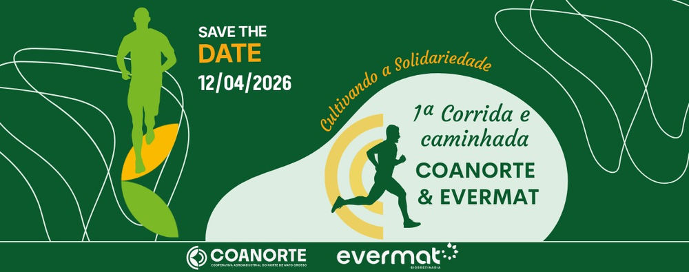 Prepare-se para viver uma manhã inesquecível de saúde, esporte e solidariedade! No dia 12 de abril de 2026, a cidade de Sinop/MT será palco da 1ª Corrida e Caminhada - Coanorte & Evermat, promovida pela Coanorte e Evermat, com largada às 07h00 no terreno ao lado da Evermat. O evento une bem-estar, esporte e cooperação com propósito social e comunitário.