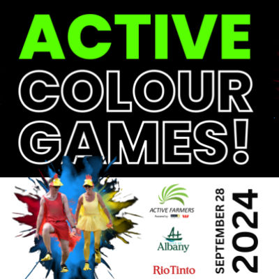 2024 Active Colour Games @ Albany, WA is an exciting event featuring the Active Farmers Games and Colour Run. Join us for a day of fun and fitness with obstacle courses, colourful gel, prizes, and more! Free T-Shirt, Mini Golf, Bubbles, Music, and Sausage Sizzle included with registration. Don't miss out on the Splash Zone for extra fun! Camping available. See you there!