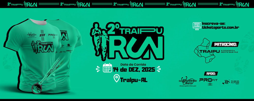 O Evento Esportivo "2º TRAIPU RUNNING 2025" será realizado na Avenida Beira Rio, em Traipu, no dia 14 de dezembro de 2025. O evento contará com as modalidades de Corrida/Caminhada de 4 km, Corrida de 8 km e Corrida/desafio de 12 km.