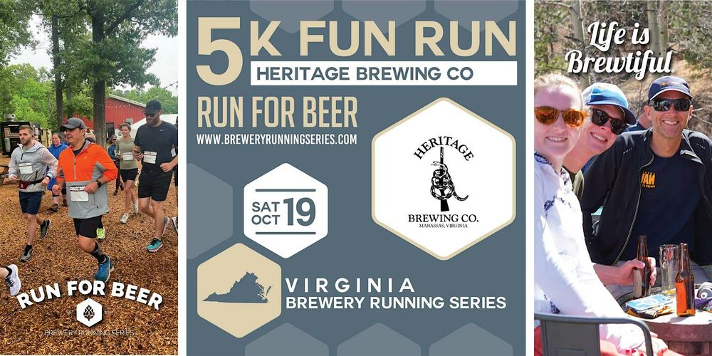 Join us for a fun-filled day of running, beer, and good vibes at Heritage Brewing. Lace up your running shoes for a 5k-ish course that starts and ends at this awesome taproom in Manassas. Whether you're a seasoned runner or just looking for a fun way to stay active, this event is fun for all. After crossing the finish line, reward yourself with a well-deserved pint of craft beer from Heritage Brewing. See you there!