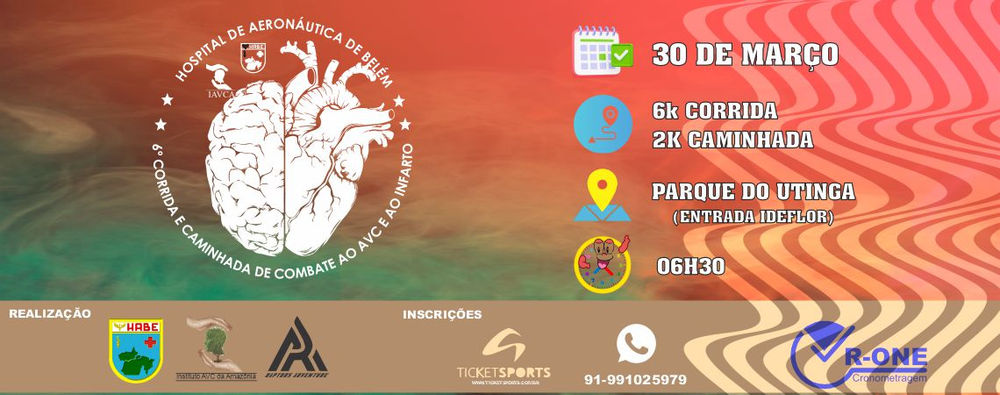 A 6ª Corrida e Caminhada do AVC será realizada no dia 30 de março de 2025, às 6h30, no Parque Estadual do Utinga, em Belém - PA. A largada e a chegada serão no estacionamento da sede do IDEFLOR.