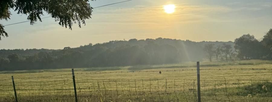 - Typical Ozark rolling hills with packed gravel.