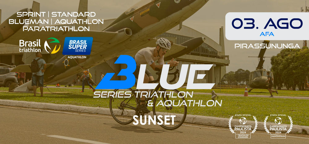 O BLUE SERIES AFA SUNSET 2024 é um evento de esportes de resistência que acontecerá na Academia da Força Aérea, em Pirassununga, SP, Brasil. O evento contará com competições de Triathlon Sprint, Triathlon Standard e Aquathlon Standard.