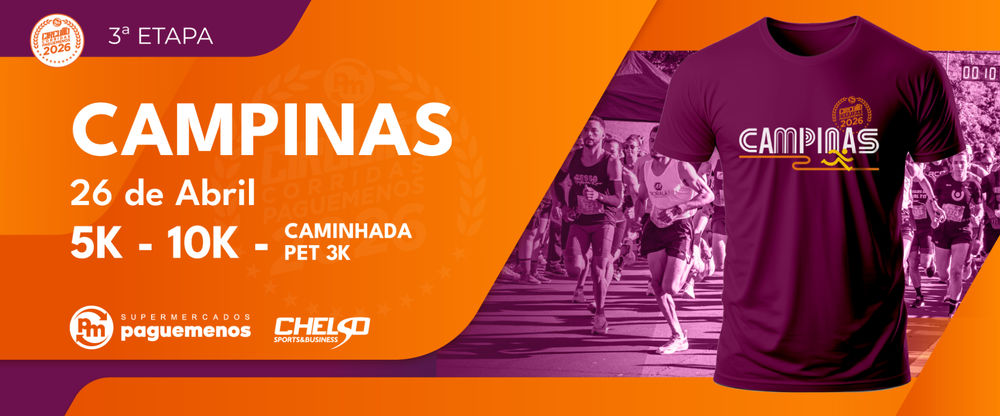 A 3ª etapa do Circuito de Corridas Pague Menos em Campinas oferece distâncias de 5km, 10km e uma caminhada pet, reunindo famílias, corredores e seus companheiros de quatro patas em um evento divertido. Campinas é vibrante e acolhedora, sendo uma das paradas mais queridas do circuito.