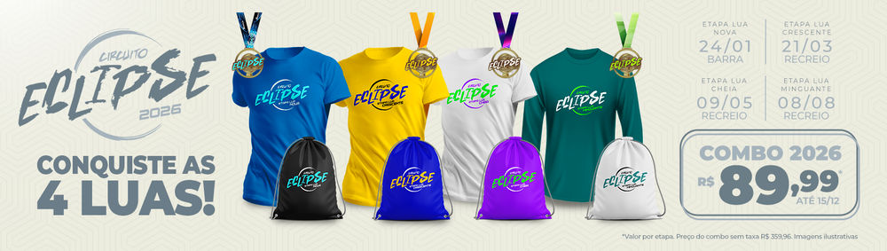 Prepare-se para viver uma experiência única com o CIRCUITO ECLIPSE - COMBO, uma série de quatro etapas noturnas de corrida e caminhada que vão iluminar as noites do Rio de Janeiro com energia, saúde e muita emoção! Evento realizado pela Corre Eventos Brasil.