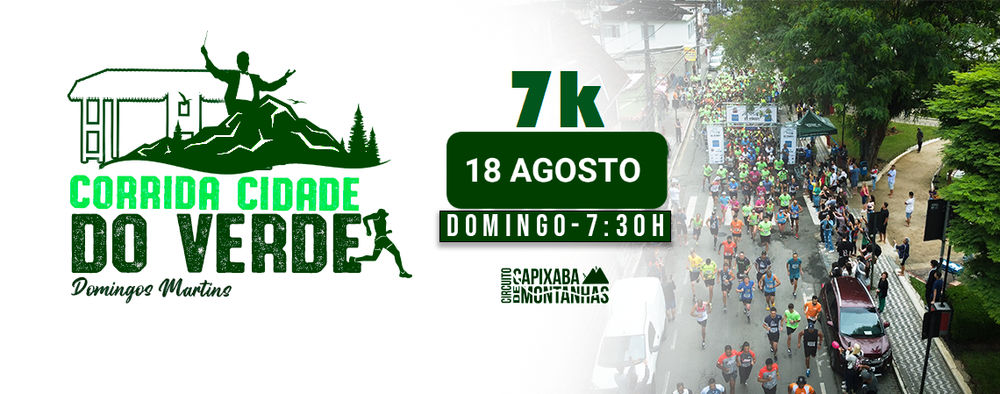 A Corrida da Cidade do Verde de Domingos Martins terá sua largada realizada às 07h30min na praça central do município no Domingo, dia 18 de agosto 2024. Será aberto aos participantes do público em geral de ambos os sexos acima de 16 anos completos até no dia da Corrida.