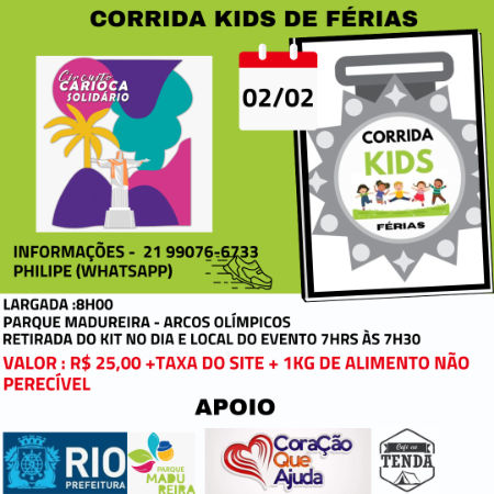 Valor: R$ 25,00 + Taxa do site + 1 lata de leite em pó (OBS: Corrida sem chip de cronometragem)