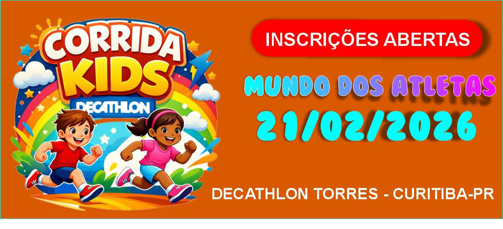 A Quarta é a ultima parada da corrida é o Mundo dos Atletas. A Corrida Kids é uma corrida infantil que incentiva a prática esportiva através da atividade mais democrática que existe, de uma forma leve, descontraída e focada no bem-estar das crianças. As baterias são separadas meninas e meninos. Podem inscrever crianças de 0 anos (desde que andem sozinhos) até 13 anos completos na data do evento.