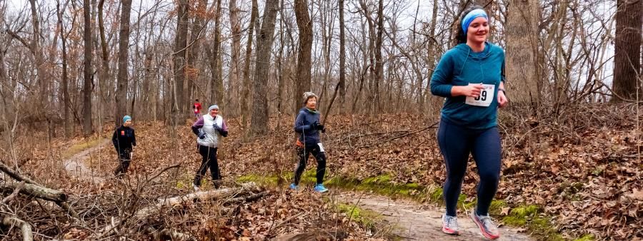 The Doomsday 5K trail race will start/finish a little way past the train tracks in Cliff Cave County Park. Runners will start on the pavement for 1/2-ish Mile then get on the Spring Valley Trail Outer Loop for 1.8-ish Miles before heading back to the finish on pavement once again for 1/2-ish Mile to the finish. Spring Valley Trail is an all-dirt trail with rolling hills, some roots and rocks to keep you present!