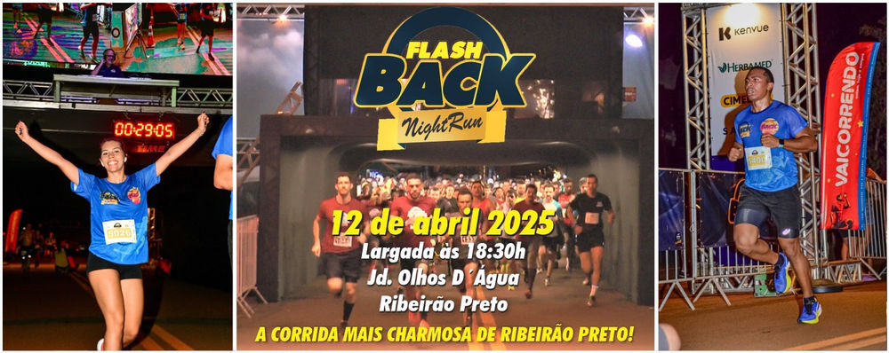A prova de pedestrianismo “Flashback Night Run” será realizada no dia 12 de abril de 2025, na cidade de Ribeirão Preto. Serão oferecidas distâncias de 5 km e 10 km, abertas ao público em geral, com largada às 18h30.