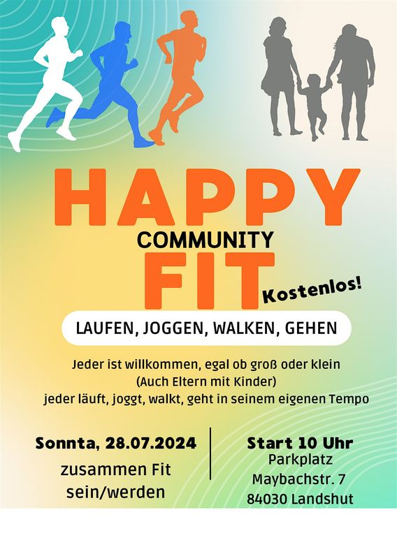 Join us for the Happy Fit event where we will walk, jog, and enjoy the outdoors together. Our motto is 'Together we move and have fun!' We will meet on Sunday, July 28, 2024, at 10:00 AM at Maybachstraße 7 and then head towards Flutmulde. From there, we will start our journey towards Münchnerau and back!