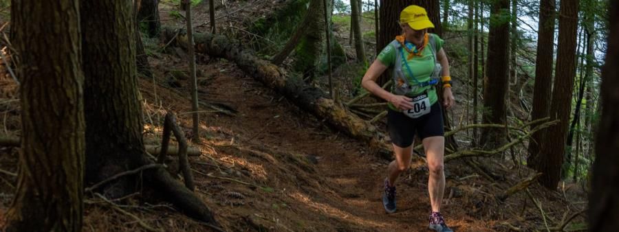 The Half Marathon follows the same course as the 10k but includes a challenging climb to the Summit of Jenkins Mountain at 2,513 feet. After reaching the summit, runners return to the base on single-track trails and finish on a boardwalk through a bog habitat.