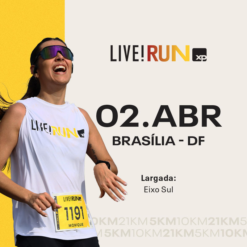 O LIVE! RUN XP é o melhor circuito de corridas da América Latina! Além da prova de 21km, também conta com percursos de 4km, 5 km, 8 km, 10 km, 12 km, 16km e Corrida Kids.