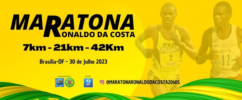A MARATONA RONALDO DA COSTA - 2023 será realizado no dia 30 de julho de 2023, na cidade de Brasília Distrito Federal.. Será a primeira Maratona no Brasil que levará o nome deste que foi um grande maratonista mundialmente conhecido e que levou o nome do Brasil ao topo do atletismo em todo mundo.