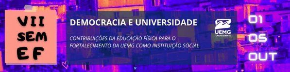 Este evento será realizado entre os dias 1º e 5 de outubro de 2024, promovendo o debate sobre temas inerentes à formação dos profissionais de Educação Física. O tema desta edição será “DEMOCRACIA E UNIVERSIDADE: contribuições da educação física para o fortalecimento da UEMG como instituição social”.