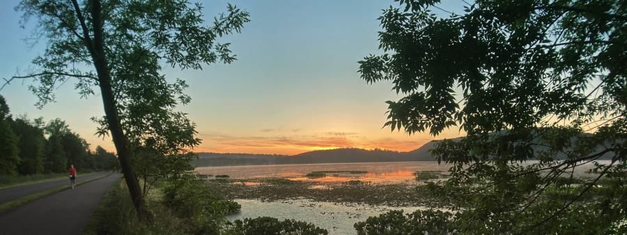 A scenic, flat and fast 2.95-mile paved pathway around Rockland Lake, accurately measured & USATF certified course. Marathon is just shy of 9 laps. The entire loop was repaved a few years ago and still is in good shape. About 50% of the course is shaded, 50% exposed. Race-Day Central and 12-Hour and 24-Hour start are near Parking field 5. Midnight Marathon start is about 7 minutes walk north of Race-Day Central