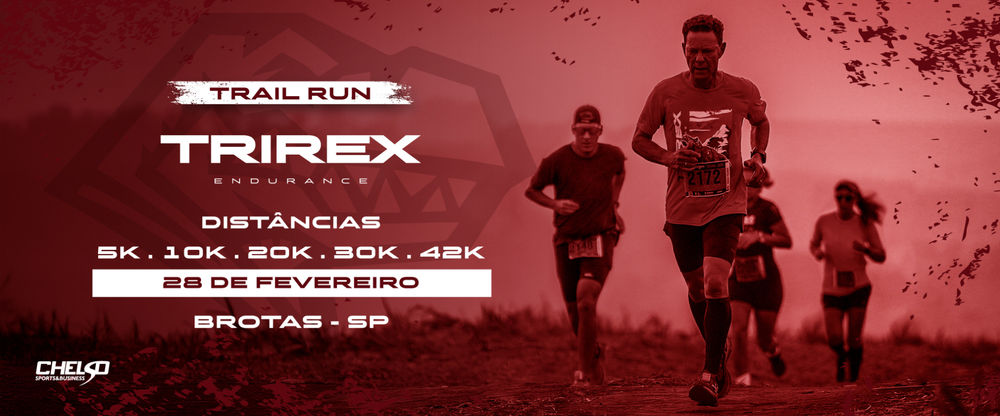 Entre trilhas, subidas e descidas, cada quilômetro é conquista. O Trirex Trail Run desafia atletas em distâncias de 5km, 10km, 20km, 30km e 42km em Brotas/SP, na capital da aventura. Natureza, resistência e superação em cada passo. Se fosse fácil, não seria TRIREX!