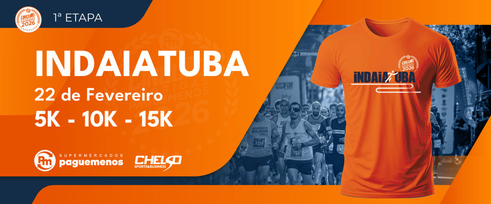 O Circuito de Corridas Pague Menos 2026 começa em grande estilo em Indaiatuba, cidade nova no circuito! Com percursos de 5km, 10km e 15km, essa etapa marca o início de uma jornada que vai percorrer o interior paulista. Indaiatuba é moderna, organizada e tem o cenário perfeito para quem quer começar o ano com superação e energia.