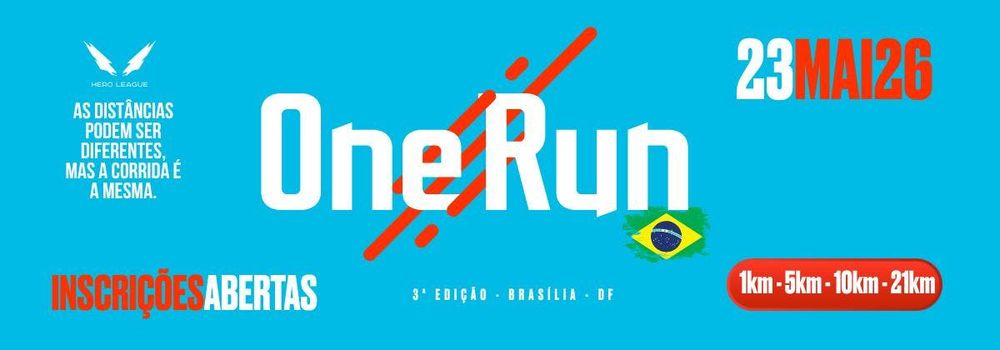 A One Run é a maior meia maratona internacional realizada no mesmo dia em todo o mundo em 2025, reuniu cerca de mais de 220 mil participantes em 110 cidades de diferentes países. Em 2024, Brasília entrou na rota do evento e foi um dos melhores eventos de corrida do ano com mais de 3000 inscritos e uma festa inesquecível, que se repetiu em 2025. Para 2026 vamos largar e correr novamente sob o céu mais bonito do mundo. Você não pode ficar de fora!