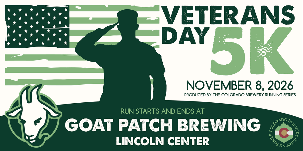 Join us for the Veterans Day 5k, and great, local craft beer at Goat Patch Brewing Company in Colorado Springs on November 8, 2026